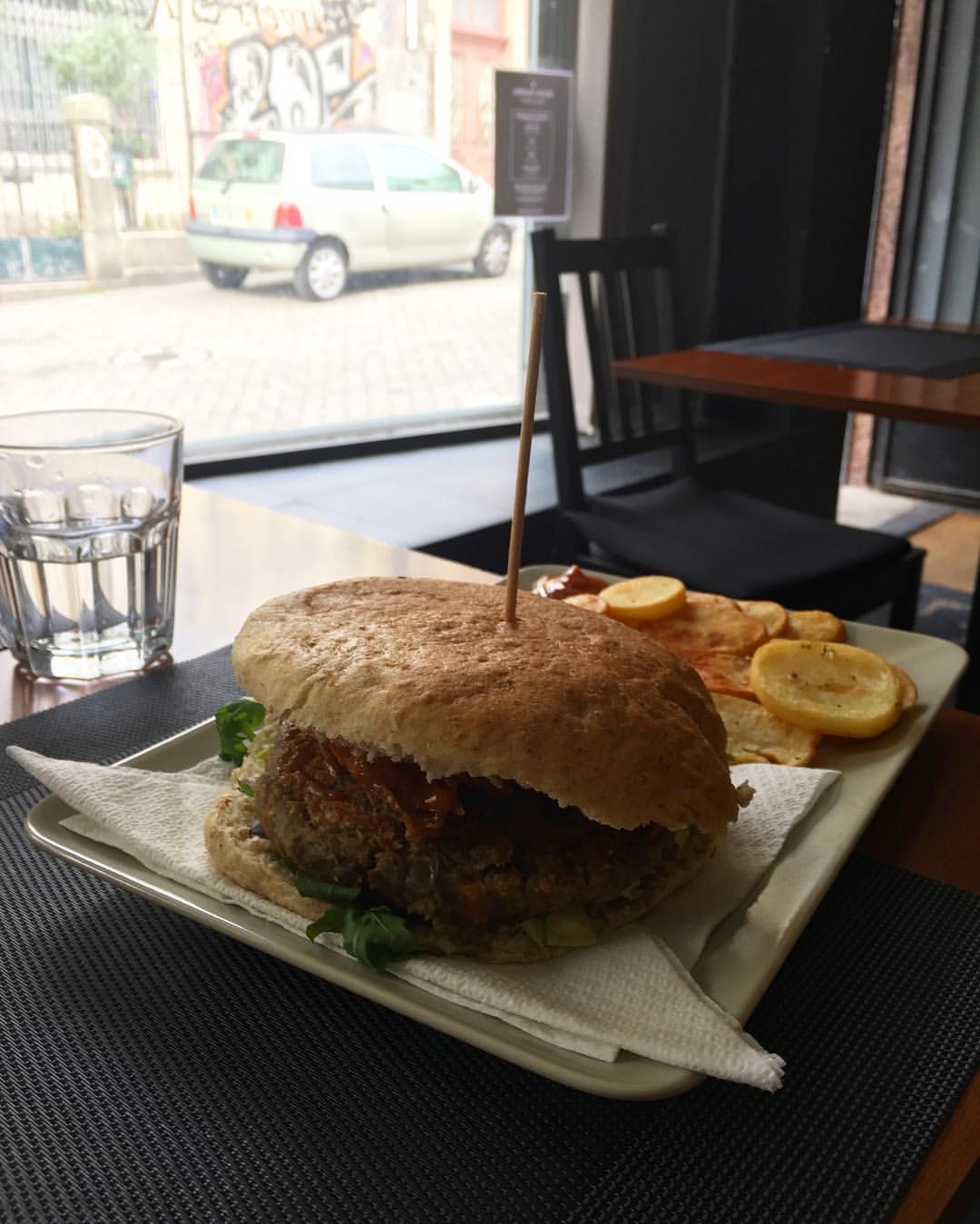 Our top pick for Porto is Em Carne Viva, an elegant vegetarian restaurant with lots of vegan options. The interior is a beautiful restored house with lots of bright white details. We ate there several times (like daily). We also enjoyed a wonderful thanksgiving dinner there with two of our friends. Meals began with a savoury plate of warn buns infused with vegetables and seitan pastry puffs. My favourite meal was Garden of Autumn with mashes roasted chestnuts, chi take mushrooms, seitan on a bed of gravy. The prices were very reasonable especially considering the exceptional quality, portions, setting and lovely staff.