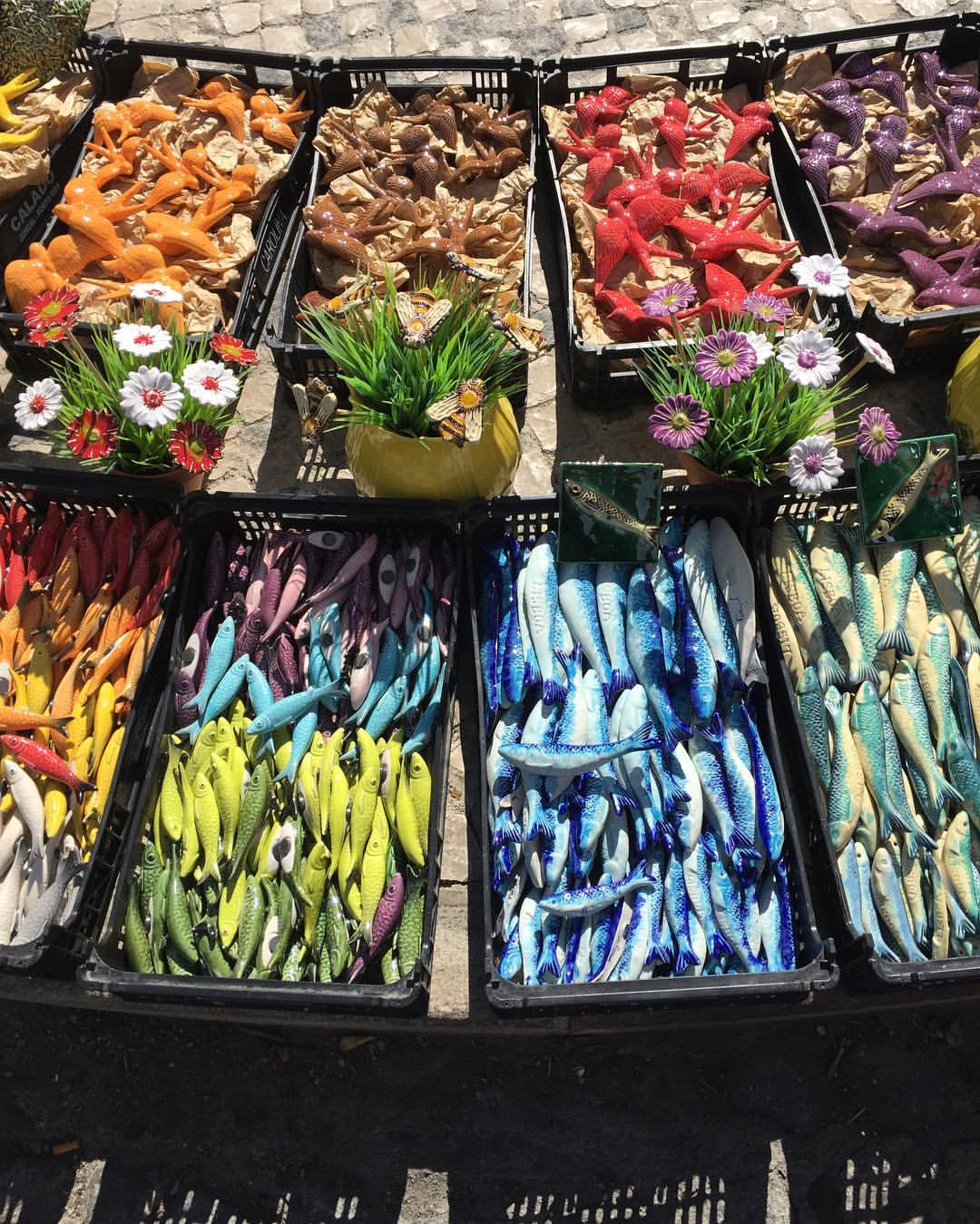 While we generally do not buy much when travelling we do like to continue the world wide search for the retitrement Picasso. This search brought us to the flea market; "Lisbon's flea market is called locally the Feira da Ladra, often thought to mean "Thieve's Market" (in Portuguese "ladra" is a woman thief) but it actually derives from "ladro," a bug found in antiques. A market of this type is thought to have been in place in Lisbon since the 12th Century and the name Feira da Ladra was first mentioned in the 17th Century." The market sprawls along narrow streets perched on a steep hill and sells assorted junk, art, ceramics, used clothes, household items and antiques. We love antique stores and flea markets; they give a great glimpse into life over the years. It is like going to a free museum where if you really like an item you can take it home! I couldn't resist and picked up a colourful, small, locally made ceramic sardine. J asked me several times if I might want to purchase a second but I insisted one would be fine. (Of course days later we made the trek again when I needed a second). We try to not have a completely packed schedule so we can be open to what ever comes our way, which also allowed us to stumble across a Vintage Festival packed with vehicles, antique furniture, art and other treasures from Portugal's past.
